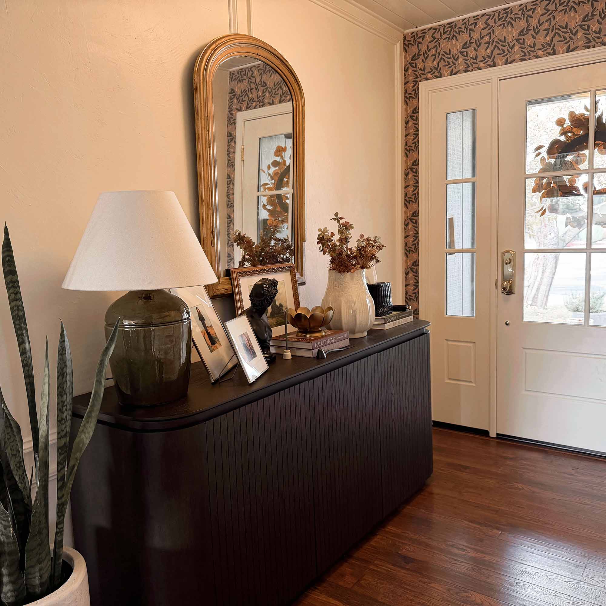 Defined by its sculpted silhouette and reeded oak front, the Moore Sideboard brings quiet sophistication to any space. Rounded edges soften its form, while the recessed black metal base adds contemporary balance. Behind four soft-close doors, thoughtful compartments organize essentials with elegance and ease — design, function, and craftsmanship in harmony.
